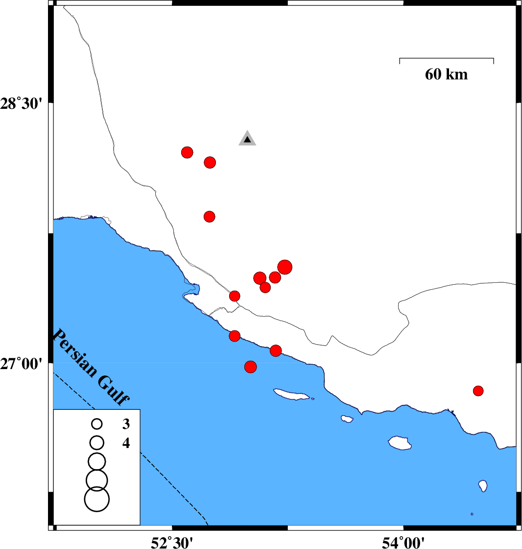 2025/11/05 15:36:21.6 19:06:21.6 27.15652.90512 ML:3.2 Persian Gulf, 44 km South of Mehr