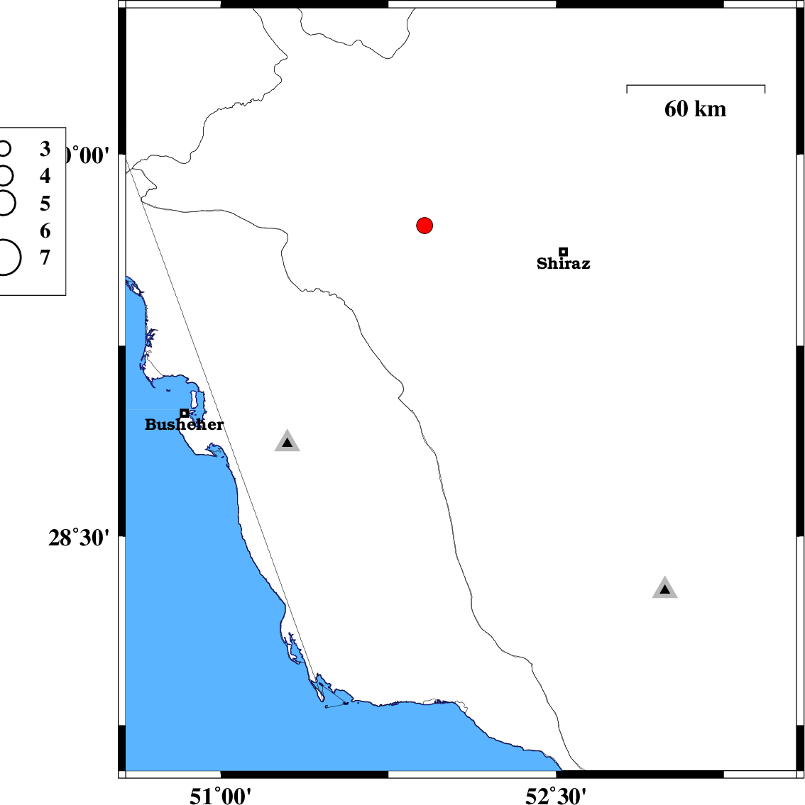 | 2025/11/04 | 18:10:58.7 | 21:40:58.7 | 27.846 | 52.741 | 12 | ML:3.3 | Fars Province, 42 km -East of Jam | ||