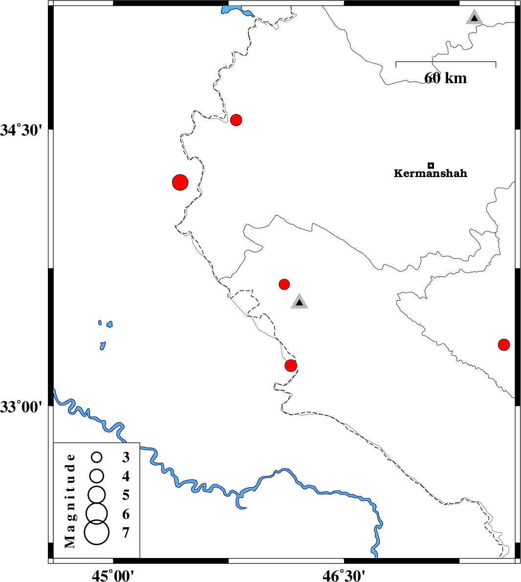| 2025/11/01 | 11:25:02.5 | 14:55:02.5 | 34.214 | 45.435 | 12 | ML:4.7 | Iraq, 36 km South-West of Qasr-E-Shirin | ||