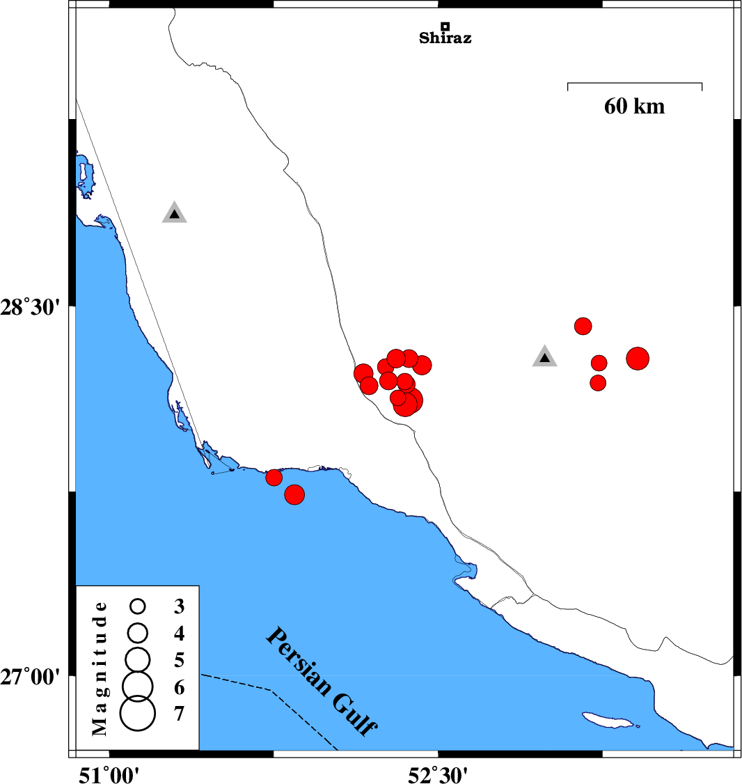 2025/01/06 19:58:23.6 23:28:23.6 28.28752.36712 ML:3.6 Fars Province, 51 km North of Jam