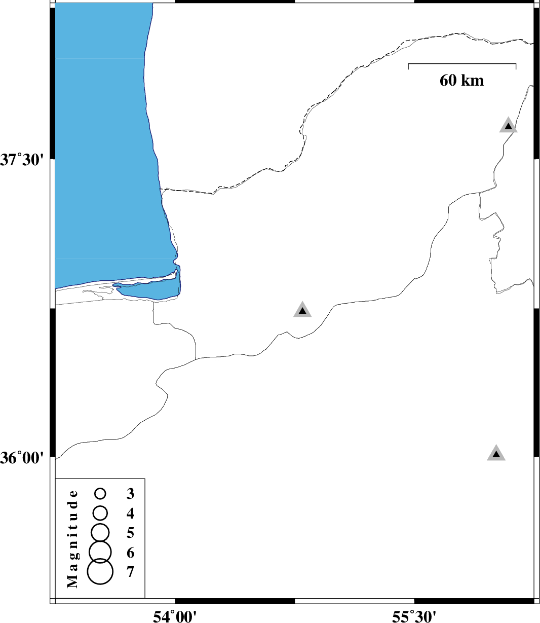 | 2025/11/16 | 08:01:26.5 | 11:31:26.5 | 36.775 | 54.749 | 8 | ML:3.1 | Golestan Province, 18 km South-West of Ali Abad |