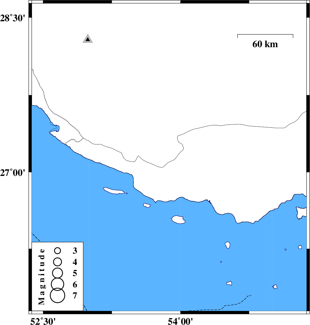 | 2025/11/16 | 18:05:12.1 | 21:35:12.1 | 27.137 | 53.876 | 9 | ML:3.6 | Fars Province, 49 km -West of Bastak |