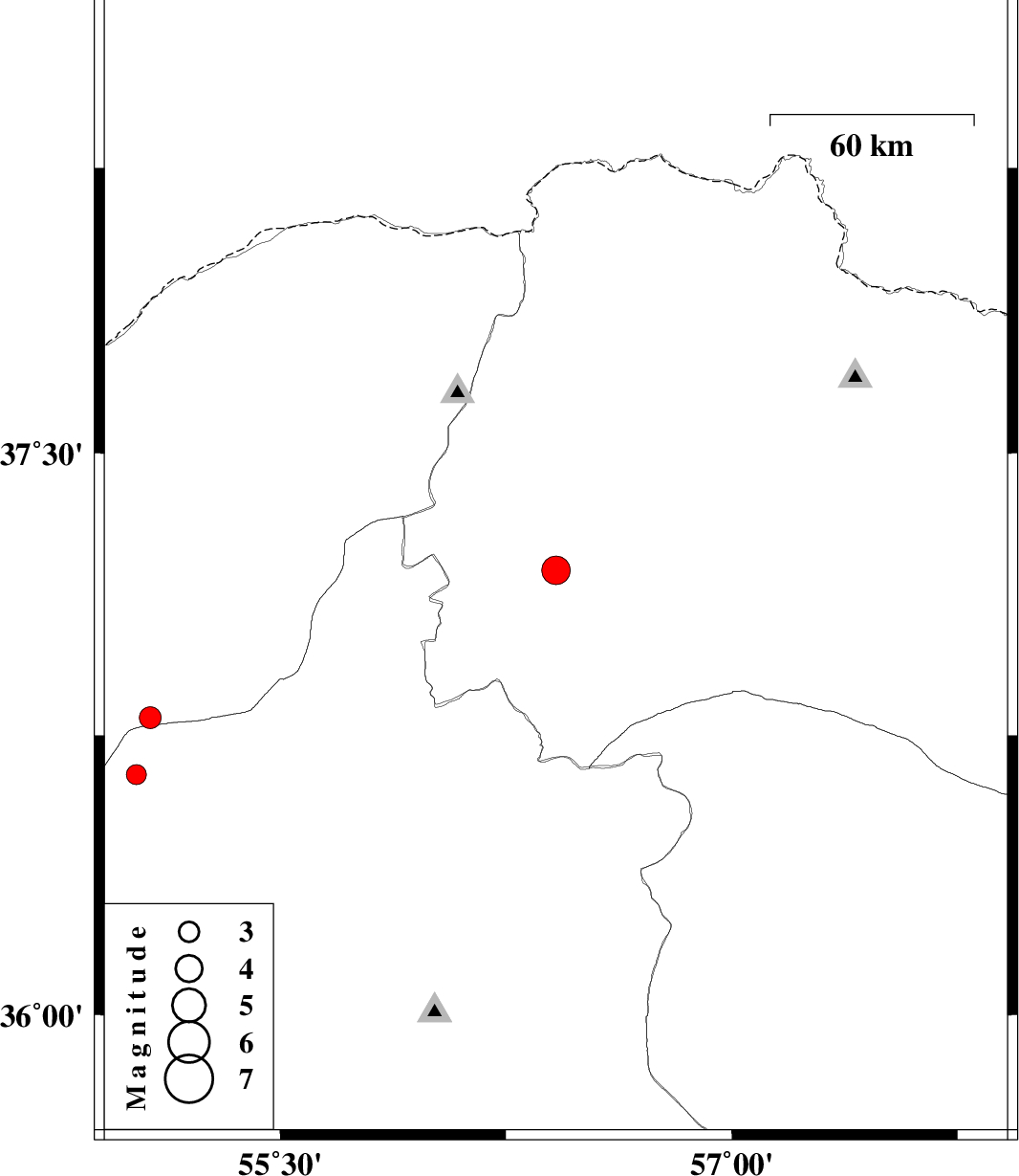 | 2025/11/17 | 06:44:08.5 | 10:14:08.5 | 36.797 | 55.068 | 10 | ML:3.3 | Golestan Province, 25 km South of Ramian | ||