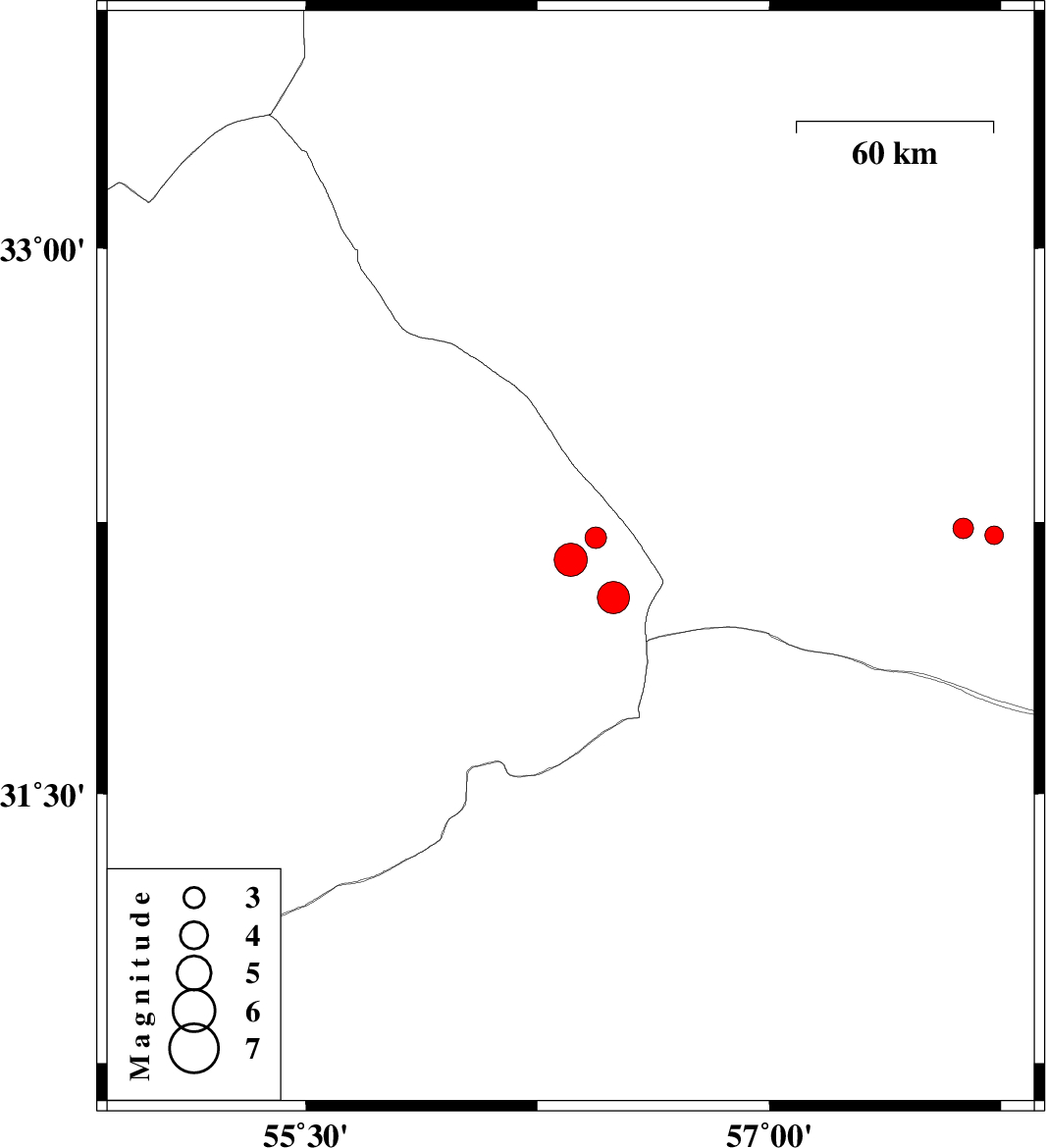 | 2025/11/17 | 10:54:38.5 | 14:24:38.5 | 32.214 | 57.727 | 12 | ML:2.7 | Yazd Province, 136 km North-East of Ravar | ||