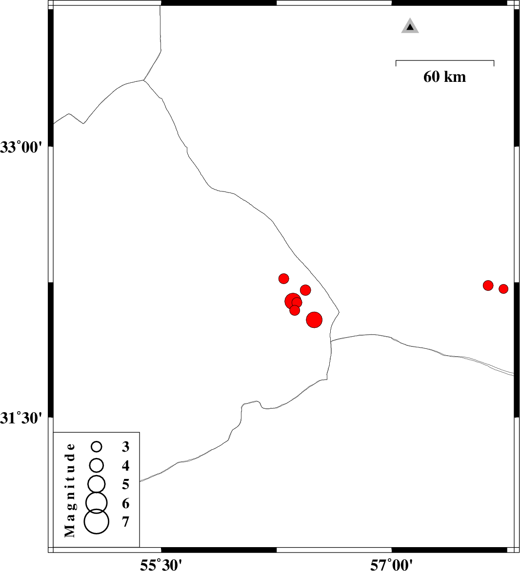 | 2025/11/17 | 10:54:38.5 | 14:24:38.5 | 32.214 | 57.727 | 12 | ML:2.7 | Yazd Province, 136 km North-East of Ravar | ||