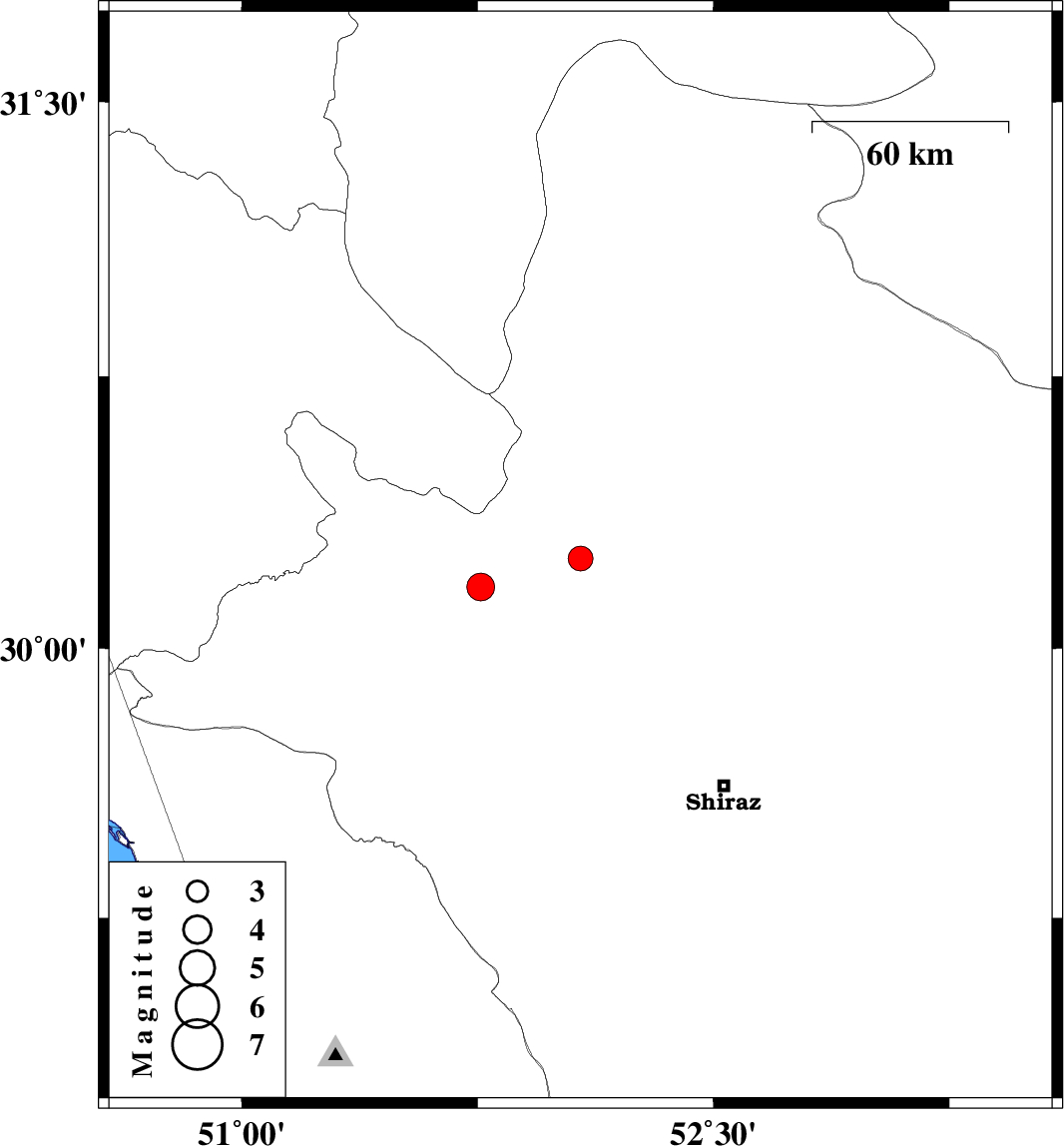 | 2025/11/27 | 22:29:13.3 | 01:59:13.3 | 30.169 | 51.76 | 12 | ML:4 | Fars Province, 24 km -East of Nurabad | ||