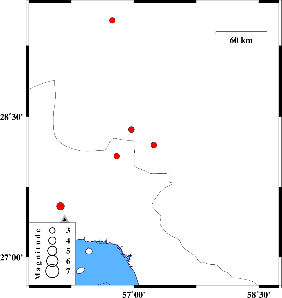 | 2025/12/01 | 05:56:18.4 | 09:26:18.4 | 28.198 | 57.241 | 14 | ML:3.1 | Kerman Province, 52 km North-West of Kahnuj | ||