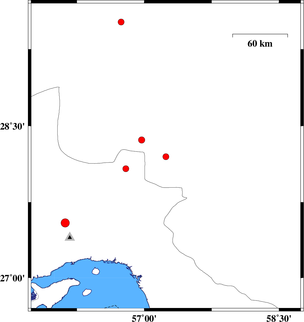 | 2025/12/01 | 04:26:20.6 | 07:56:20.6 | 27.544 | 56.121 | 12 | ML:4.3 | Hormozgan Province, 43 km North-West of Bandar-e abbas | ||