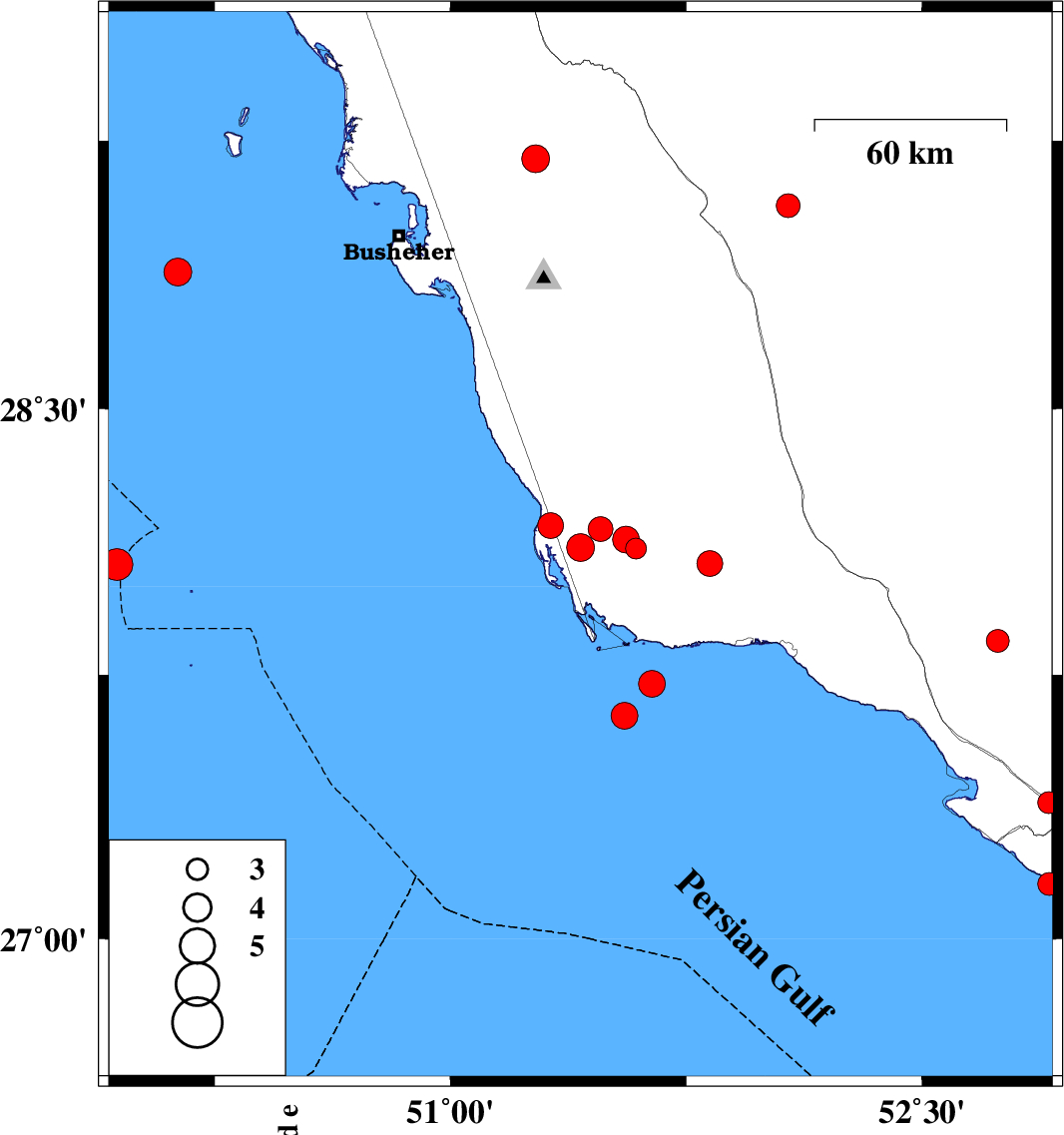 Bushehr Province, 56 km North-West of Bandar-e kangan | |