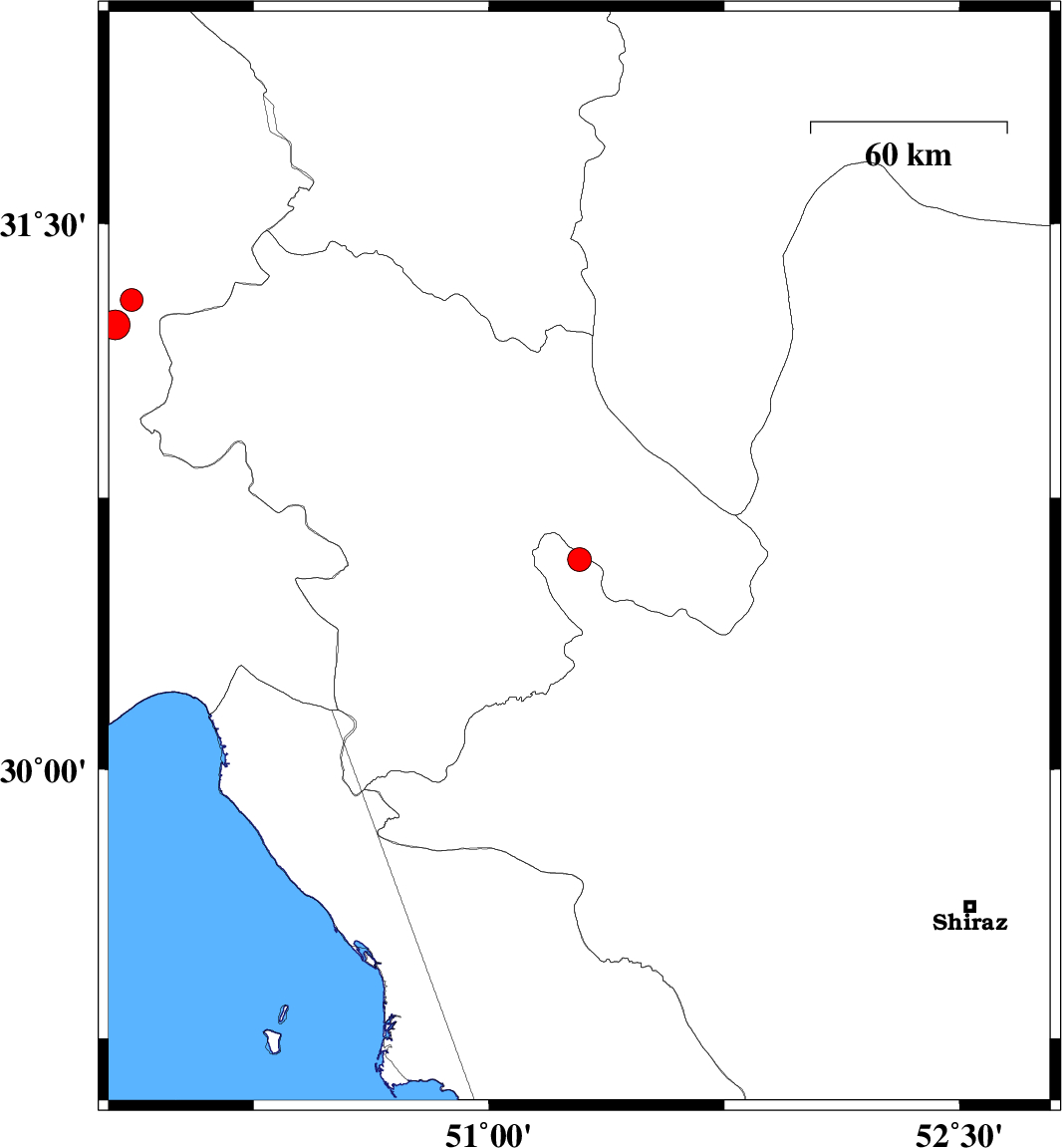 | 2025/12/06 | 05:07:40.3 | 08:37:40.3 | 30.579 | 51.288 | 12 | ML:3.4 | Fars Province, 29 km -West of Yasuj | ||