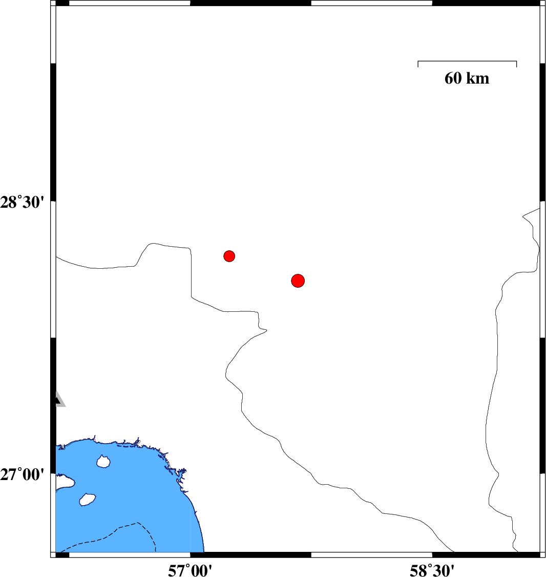 | 2025/12/07 | 09:48:43.6 | 13:18:43.6 | 28.063 | 57.667 | 12 | ML:3.7 | Kerman Province, 13 km North of Kahnuj | ||