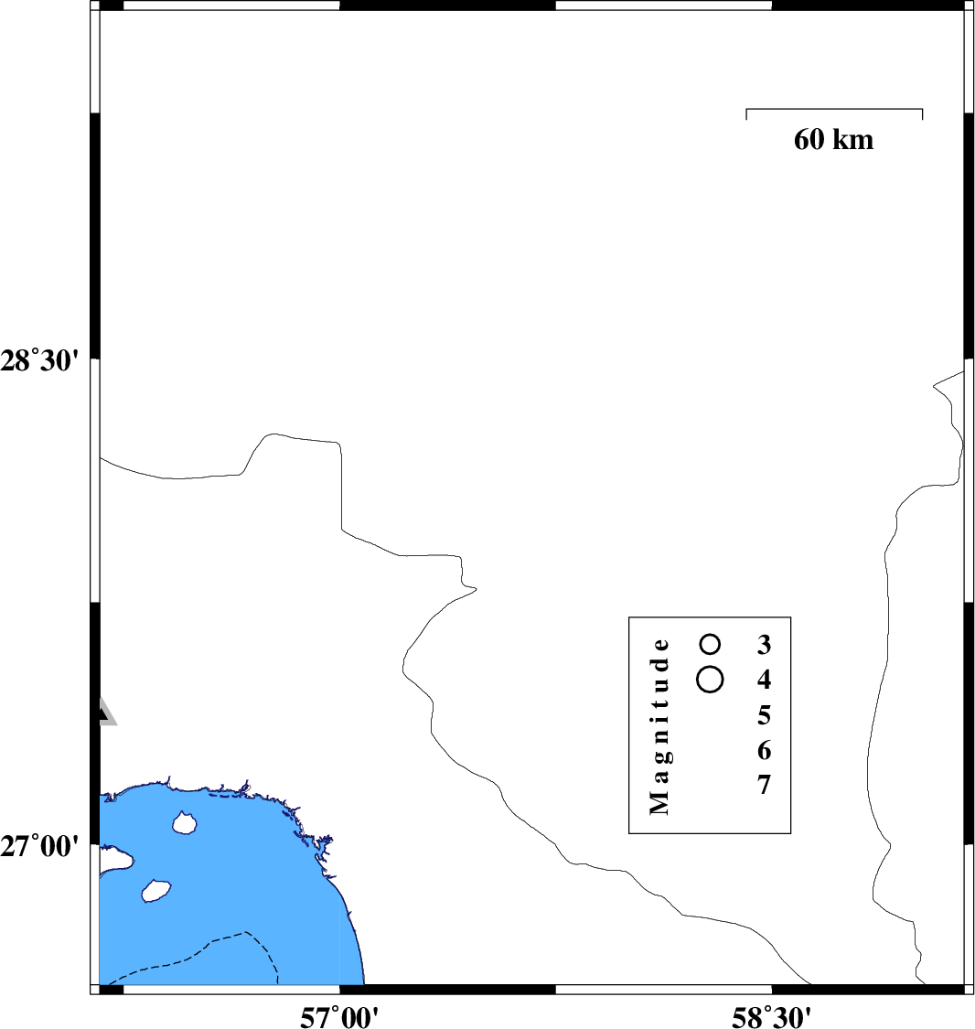| 2025/12/01 | 05:56:18.4 | 09:26:18.4 | 28.198 | 57.241 | 14 | ML:3.1 | Kerman Province, 52 km North-West of Kahnuj |