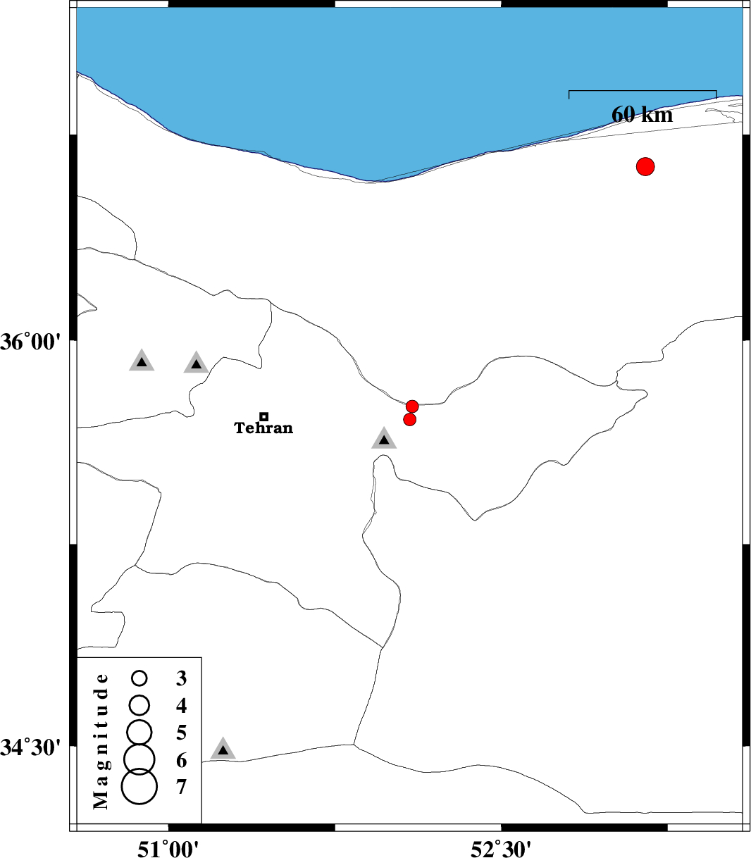 | 2025/12/09 | 18:41:10.8 | 22:11:10.8 | 35.757 | 52.099 | 12 | ML:2.6 | Tehran Province, 5 km of Damavand | ||