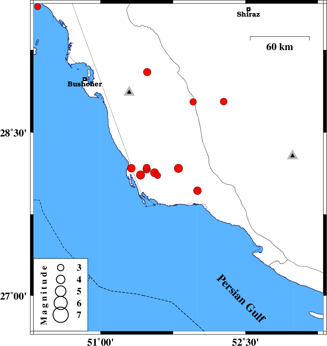 Bushehr Province, 46 km North-West of Bandar-e kangan | |