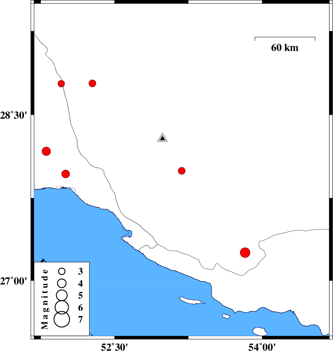 | 2025/12/14 | 20:55:55.5 | 00:25:55.5 | 28.779 | 51.958 | 12 | ML:3.1 | Bushehr Province, 16 km -West of Farashband | ||