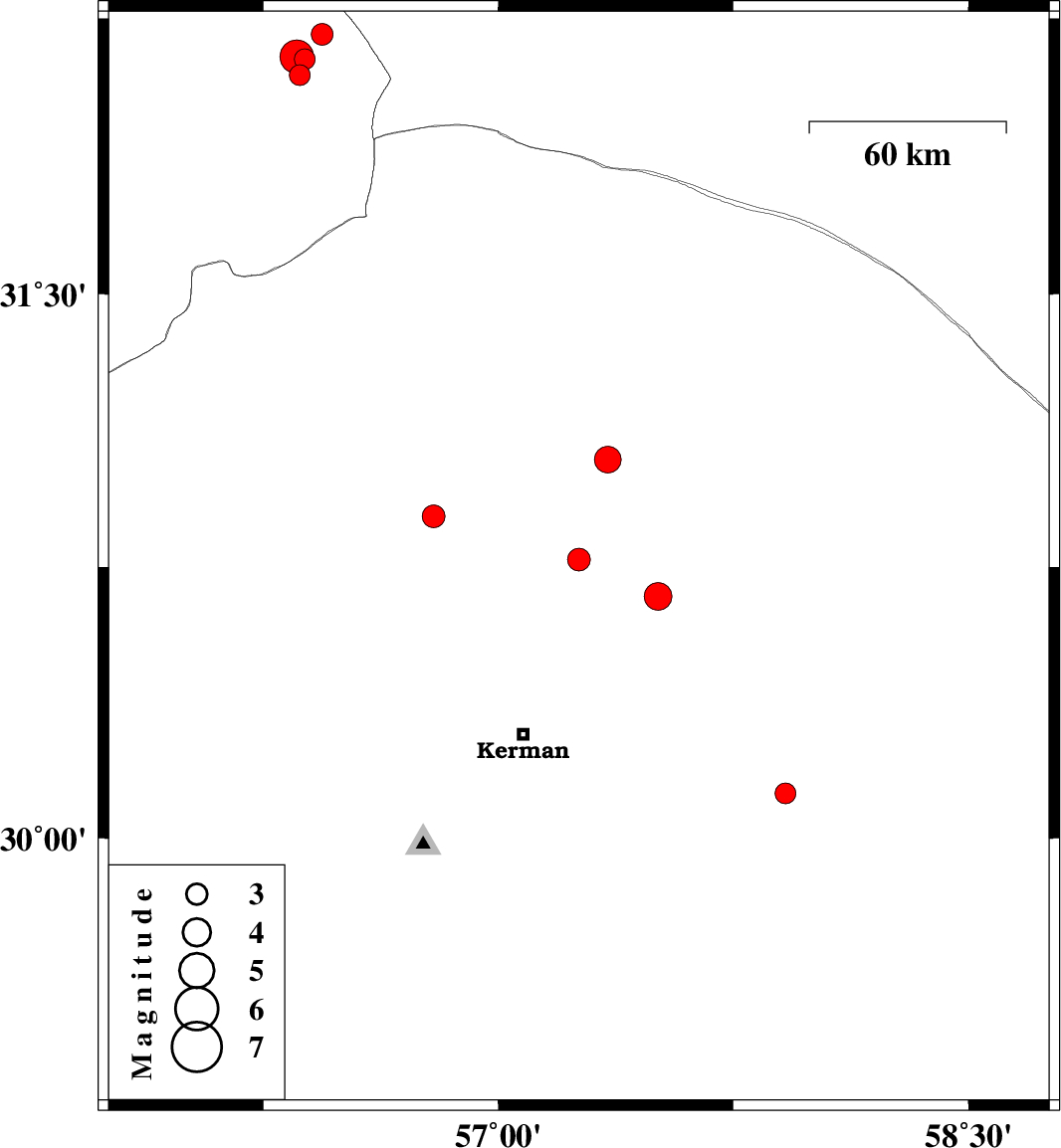 | 2025/12/06 | 23:13:02.1 | 02:43:02.1 | 30.124 | 57.916 | 12 | ML:2.9 | Kerman Province, 82 km South-East of Kerman | ||
