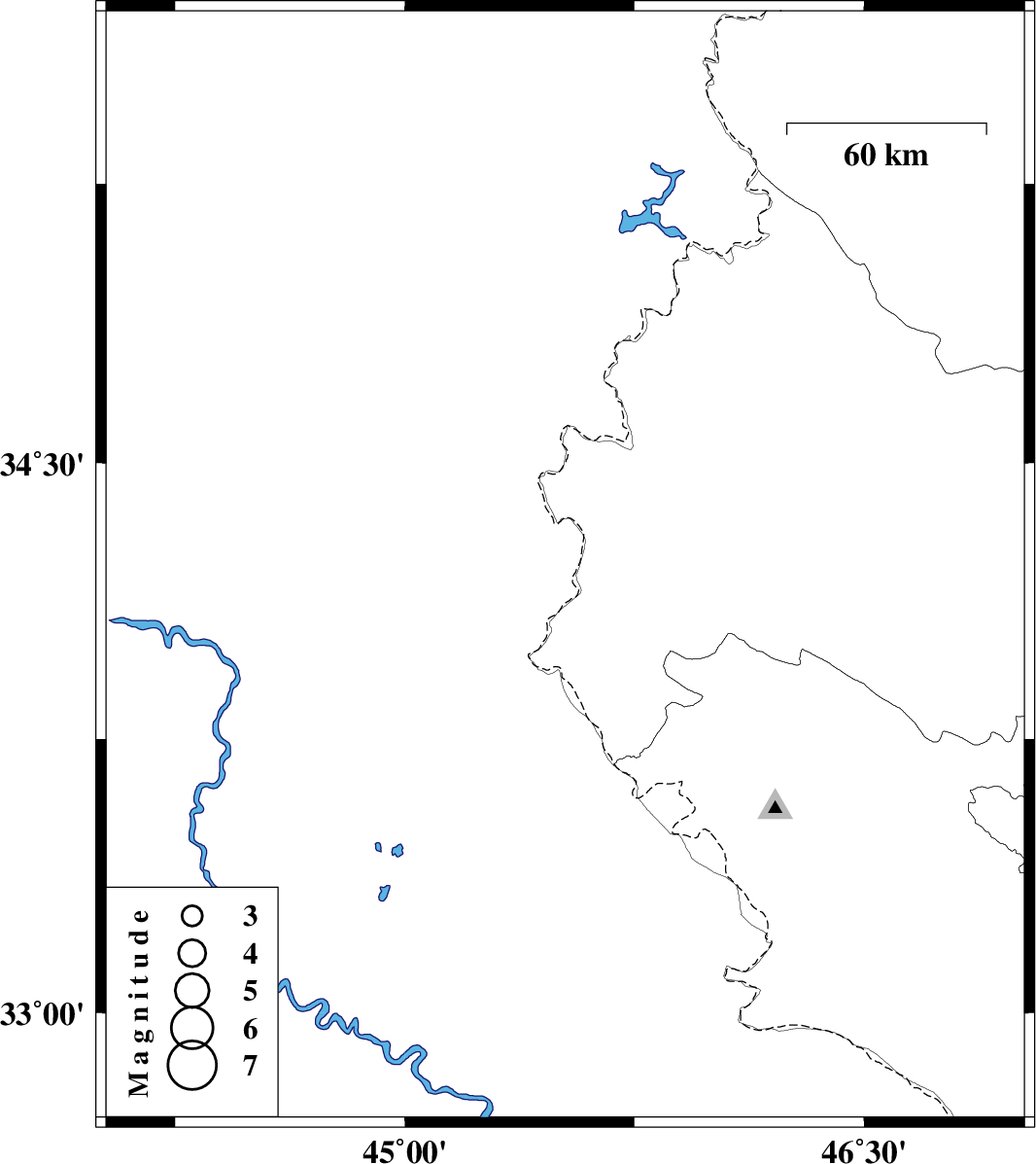 | 2025/12/27 | 03:03:23.8 | 06:33:23.8 | 34.213 | 45.524 | 12 | ML:3.4 | Iraq, 34 km South of Qasr-E-Shirin |