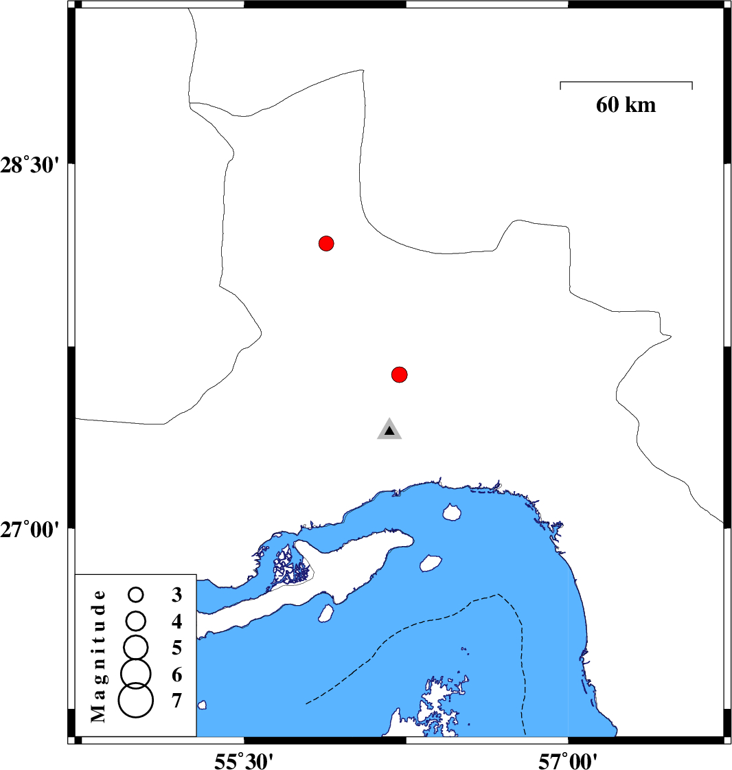 | 2026/01/02 | 04:56:42.7 | 08:26:42.7 | 27.634 | 56.218 | 17 | ML:3.2 | Hormozgan Province, 50 km North of Bandar-e abbas | ||