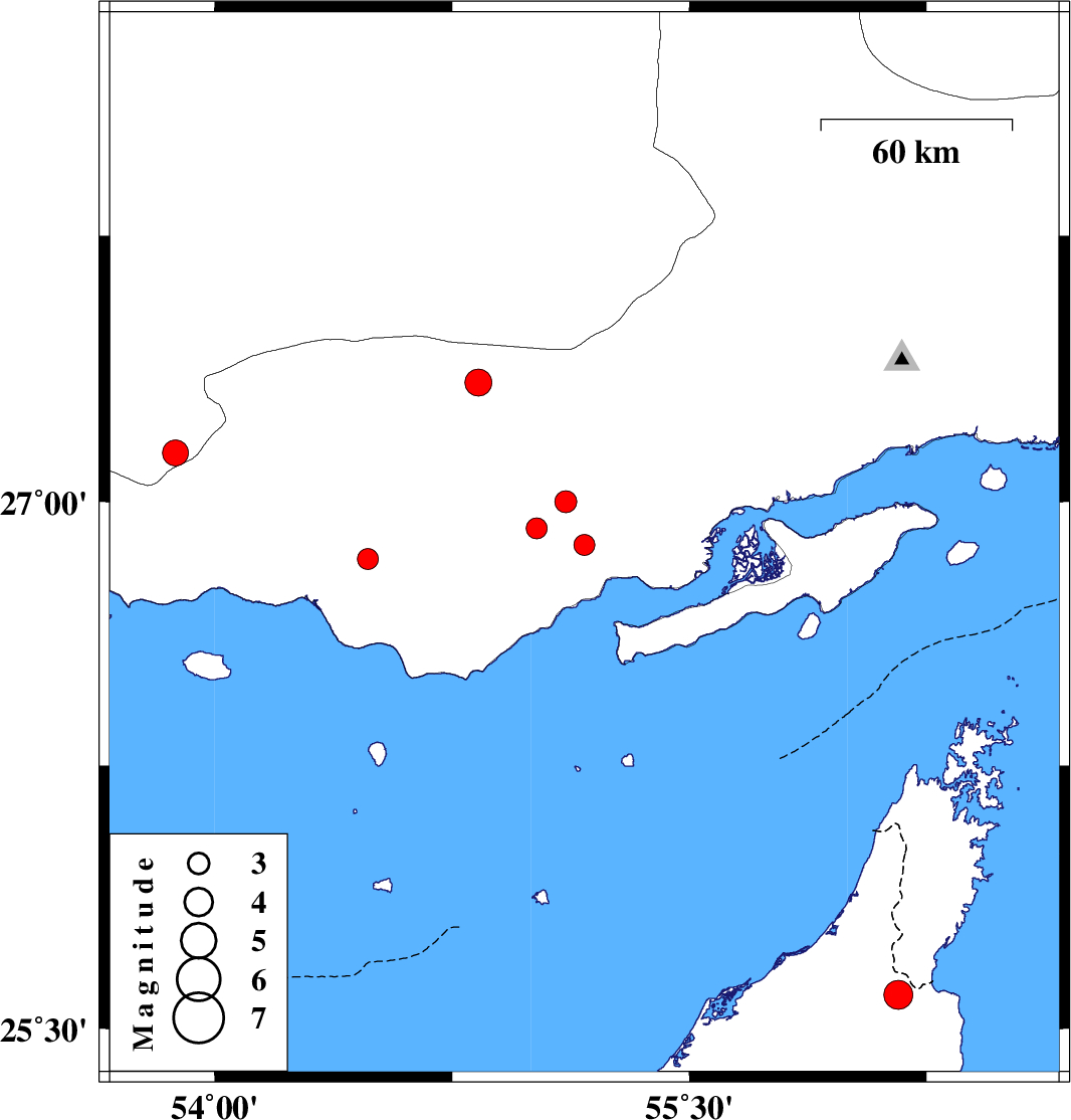 | 2025/11/24 | 10:06:55.8 | 13:36:55.8 | 26.924 | 55.017 | 12 | ML:2.9 | Hormozgan Province, 47 km North-East of Bandar-e lengeh | ||
