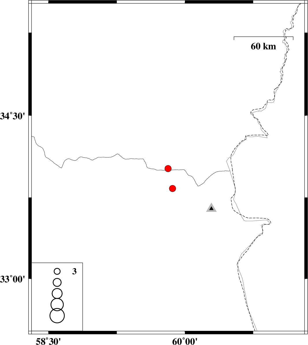 | 2026/01/05 | 07:29:51.9 | 10:59:51.9 | 34.014 | 59.814 | 12 | ML:3.2 | Khorasan(center) Province, 69 km South-West of Khaf | ||