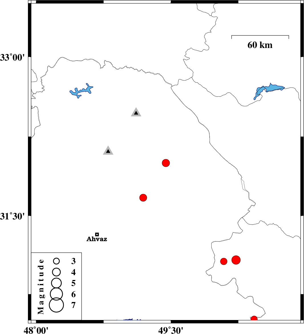 | 2026/01/07 | 05:13:15.1 | 08:43:15.1 | 32 | 49.444 | 12 | ML:3.8 | Khoozestan Province, 15 km -East of Masjed Soleyman | ||