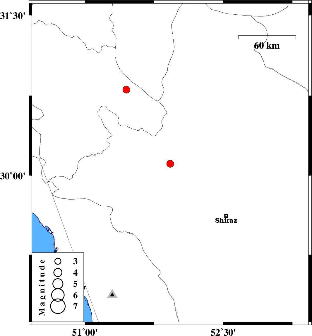 | 2026/01/09 | 08:12:44.9 | 11:42:44.9 | 30.11 | 51.925 | 12 | ML:3.5 | Fars Province, 18 km South of Ardakan |