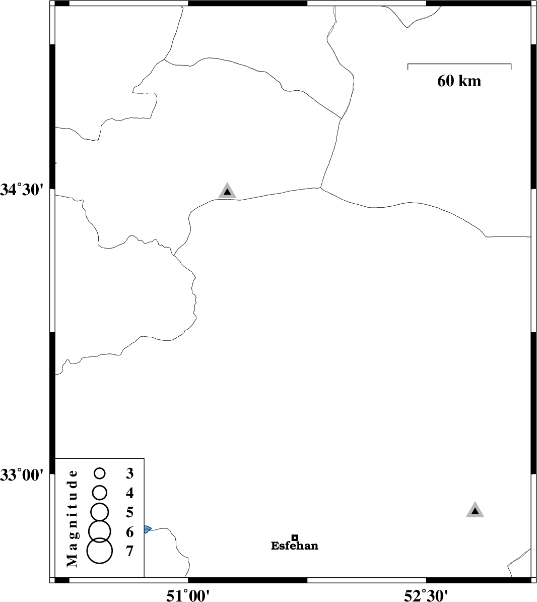 | 2026/01/13 | 23:22:35.2 | 02:52:35.2 | 33.949 | 51.66 | 12 | ML:3.6 | Esfahan Province, 20 km -East of Kashan |