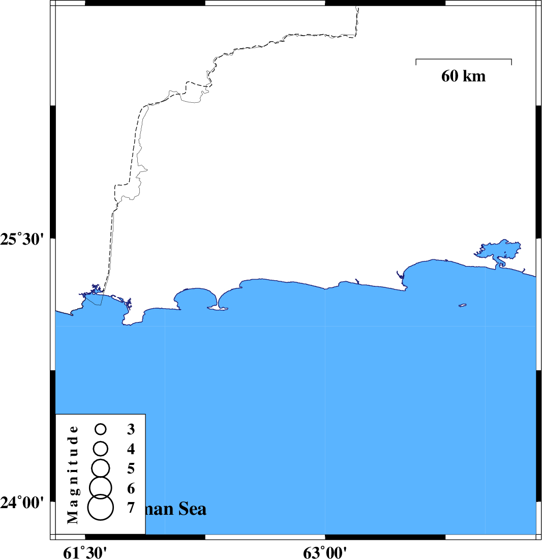 | 2026/01/15 | 08:06:01.3 | 11:36:01.3 | 25.311 | 62.815 | 12 | ML:3.8 | Pakistan |