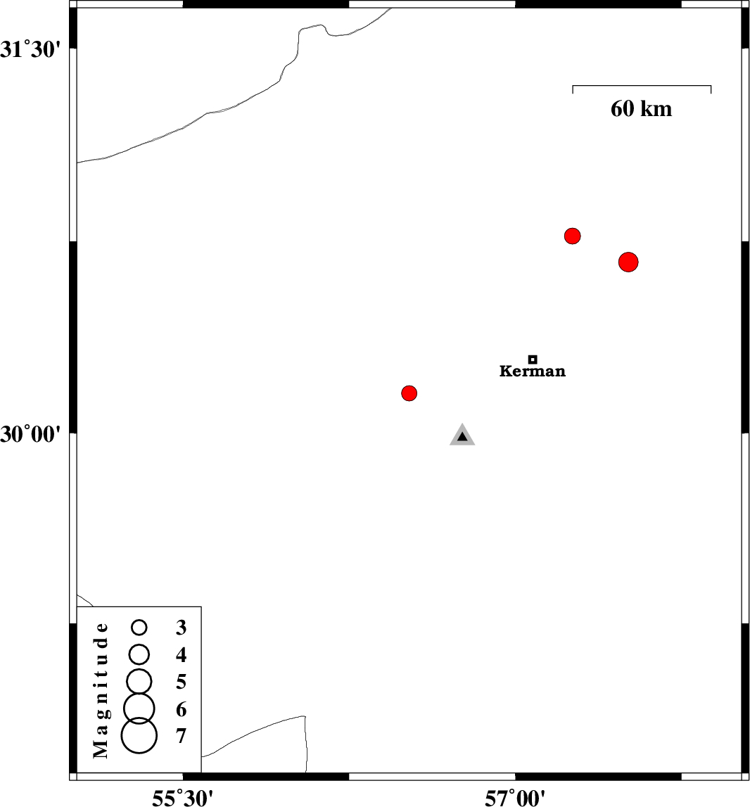 | 2025/12/18 | 05:50:35.0 | 09:20:35.0 | 30.669 | 57.51 | 12 | ML:4 | Kerman Province, 59 km North-East of Kerman |