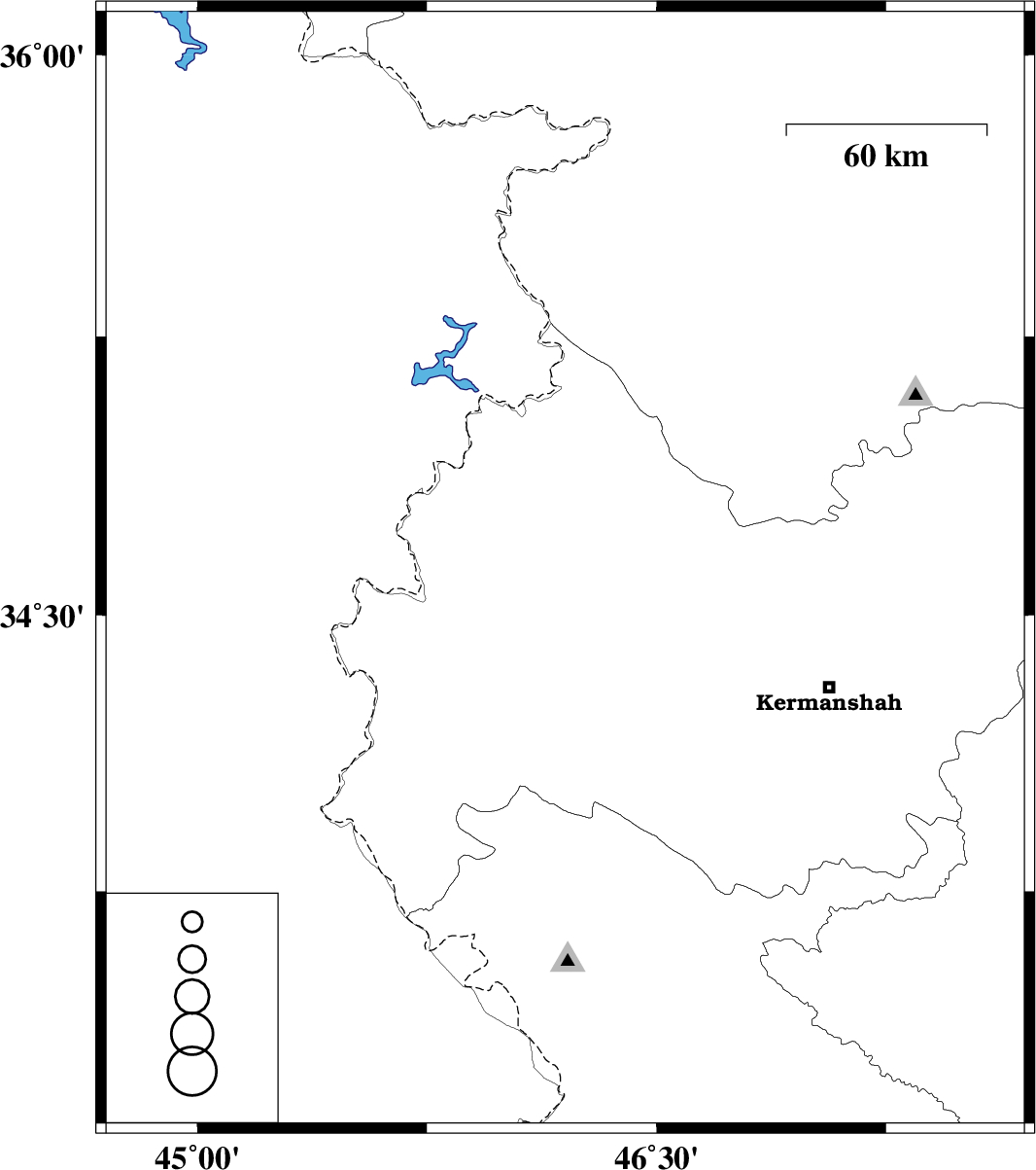 | 2026/01/15 | 03:59:04.6 | 07:29:04.6 | 34.617 | 46.202 | 12 | ML:3.7 | Kermanshah Province, 33 km South-West of Javanrud |