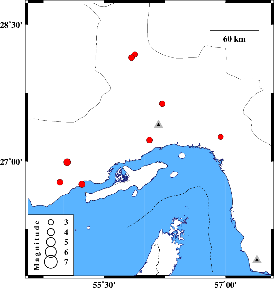 | 2026/01/02 | 04:56:42.7 | 08:26:42.7 | 27.634 | 56.218 | 17 | ML:3.2 | Hormozgan Province, 50 km North of Bandar-e abbas | ||