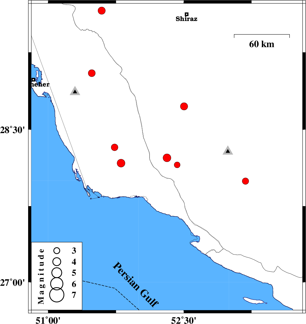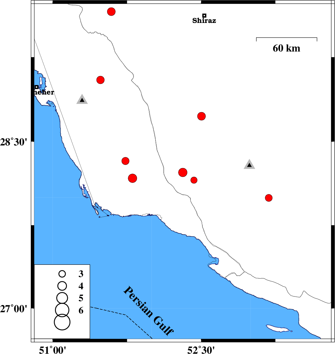 | 2026/01/03 | 17:24:44.7 | 20:54:44.7 | 28.154 | 52.427 | 12 | ML:3 | Fars Province, 37 km North-East of Jam | ||