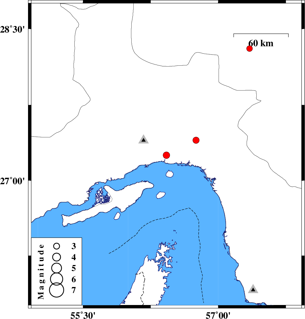 | 2026/01/27 | 00:11:28.4 | 03:41:28.4 | 27.252 | 56.425 | 8 | ML:3.4 | Hormozgan Province, 16 km -East of Bandar-e abbas | ||
