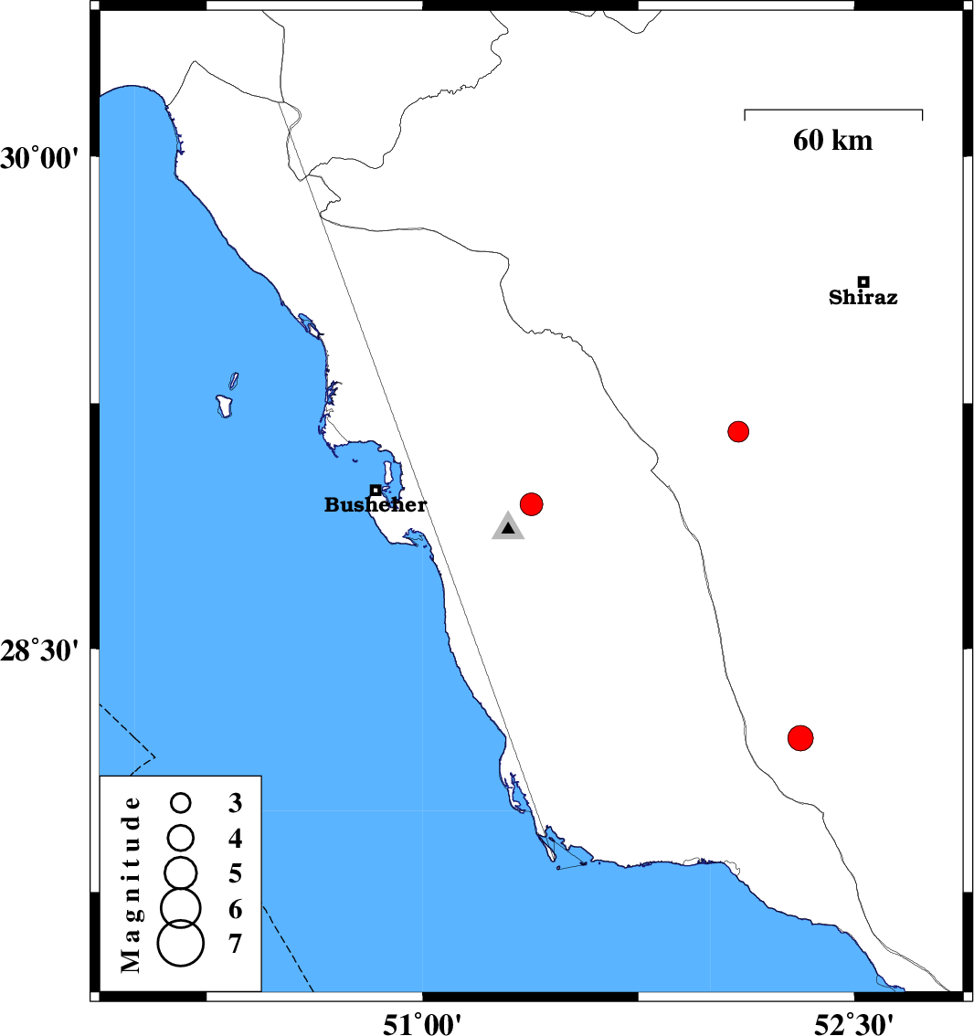 | 2026/01/27 | 13:09:33.0 | 16:39:33.0 | 28.941 | 51.378 | 12 | ML:3.5 | Bushehr Province, 13 km -East of Ahram | ||
