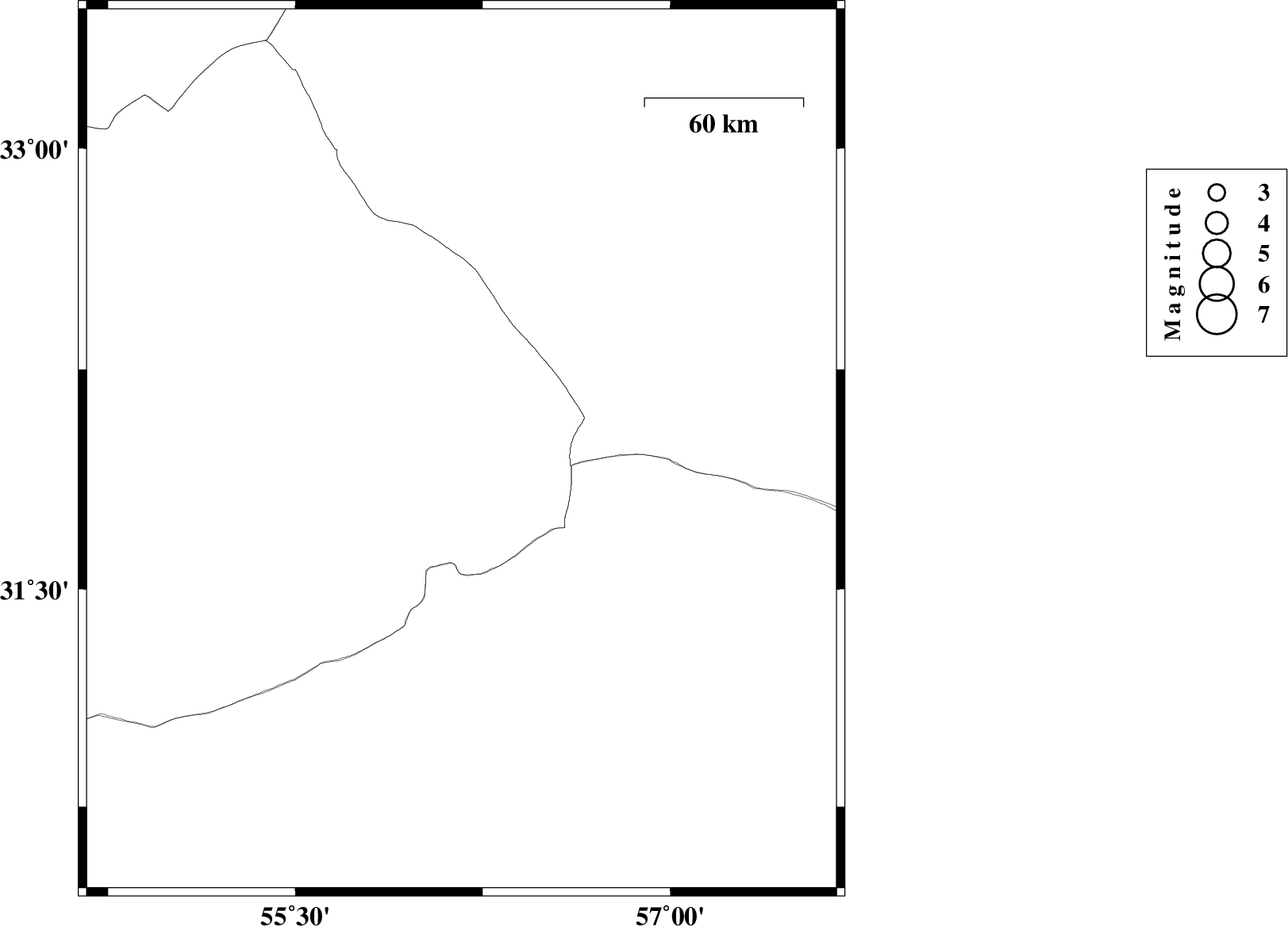 | 2026/01/19 | 18:15:44.5 | 21:45:44.5 | 31.97 | 56.165 | 12 | ML:3.1 | Yazd Province, 83 km North-East of Bafq | ||