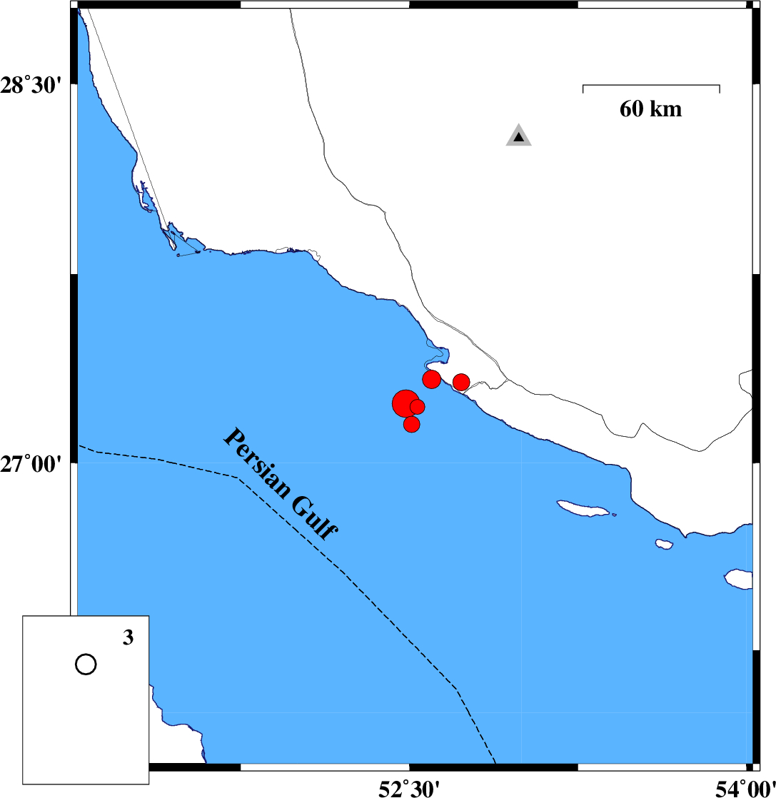 2026/02/01 12:02:22.5 15:32:22.5 27.28352.57716 ML:3 Persian Gulf, 42 km South-West of Mehr