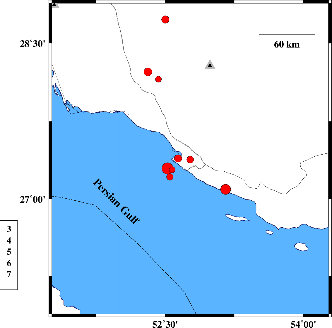 2026/02/01 12:02:22.5 15:32:22.5 27.28352.57716 ML:3 Persian Gulf, 42 km South-West of Mehr