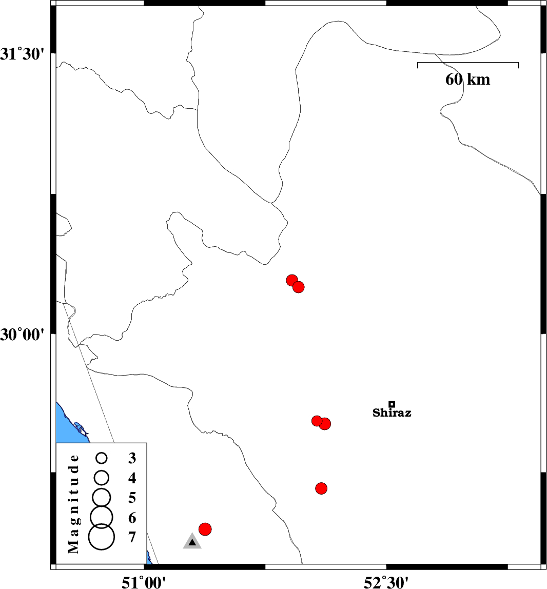 | 2026/01/31 | 08:00:57.9 | 11:30:57.9 | 29.514 | 52.117 | 12 | ML:3.4 | Fars Province, 42 km South-West of Shiraz | ||