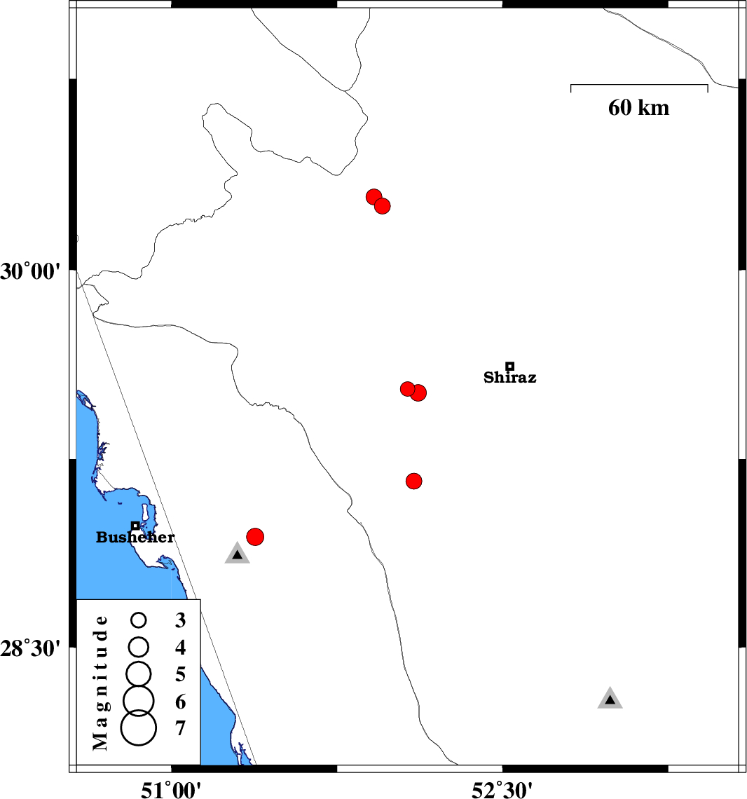 | 2026/01/31 | 08:00:57.9 | 11:30:57.9 | 29.514 | 52.117 | 12 | ML:3.4 | Fars Province, 42 km South-West of Shiraz | ||