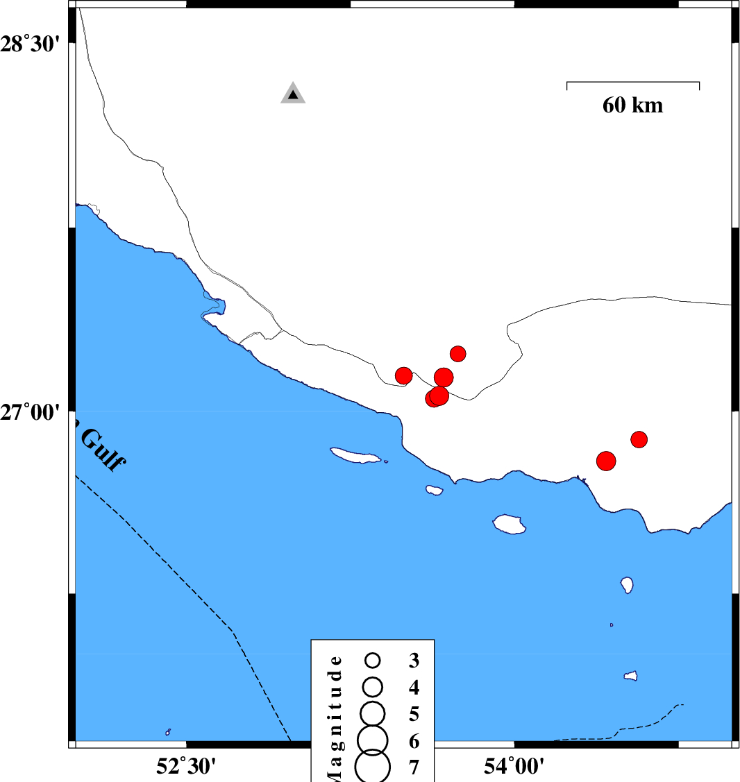 | 2026/02/19 | 03:43:06.5 | 07:13:06.5 | 27.32 | 52.578 | 12 | ML:4 | Persian Gulf, 40 km South-West of Mehr | ||