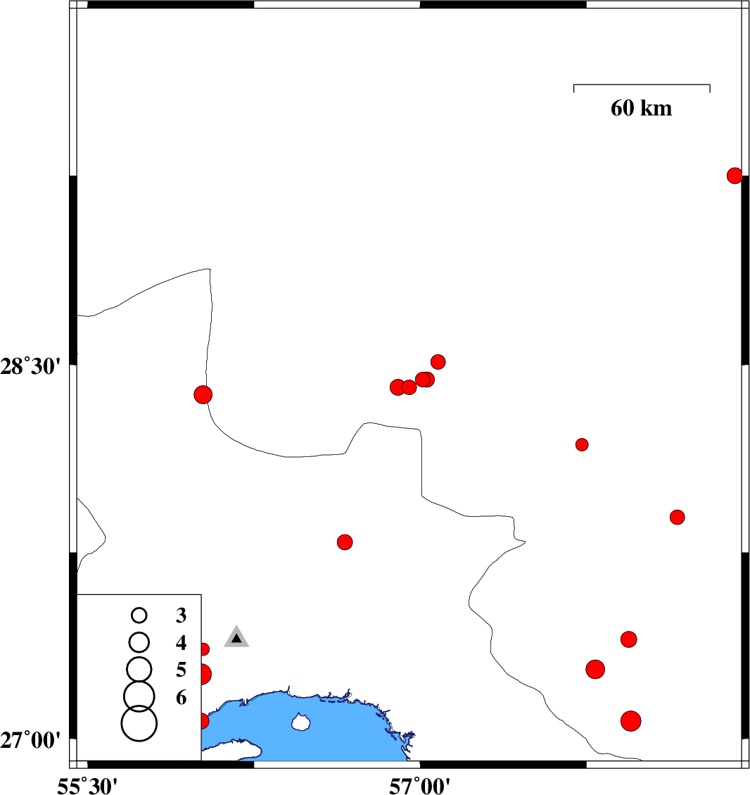2005/07/12 | 08:04:27.0 | 12:34:27.0 | 27.26 | 56.01 | 14 | ML:4.3 | |||