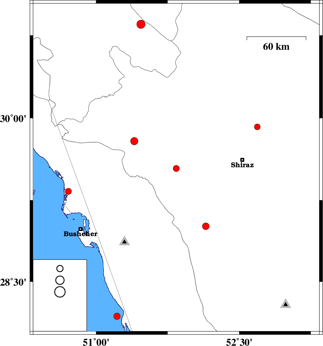 2005/08/20 | 09:34:09.4 | 14:04:09.4 | 28.18 | 51.22 | 36 | ML:3.1 | |||