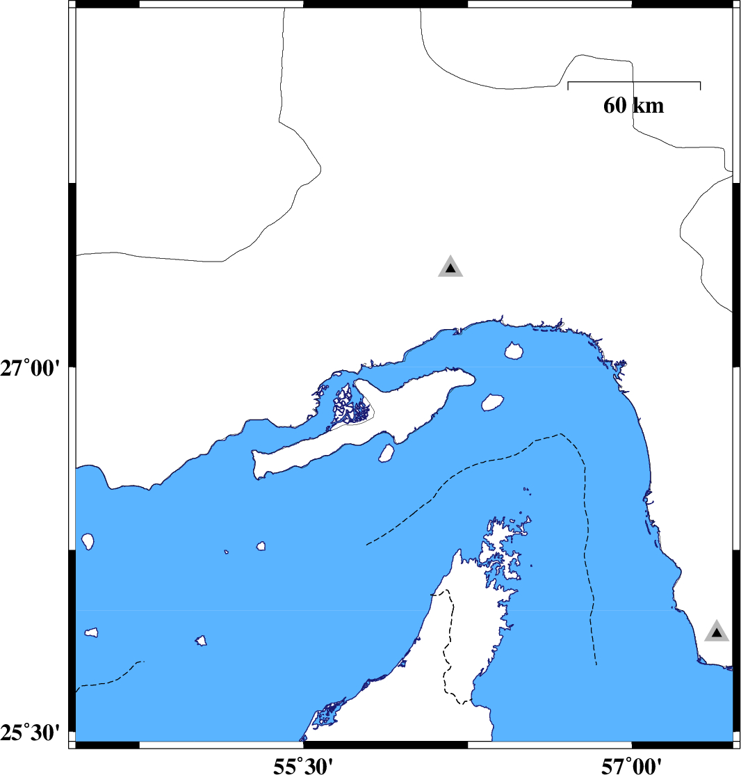 2005/11/27 | 16:30:39.1 | 20:00:39.1 | 27 | 55.79 | 14 | Mb:5.8 | Persian Gulf, 47 km West of Qeshm | ||