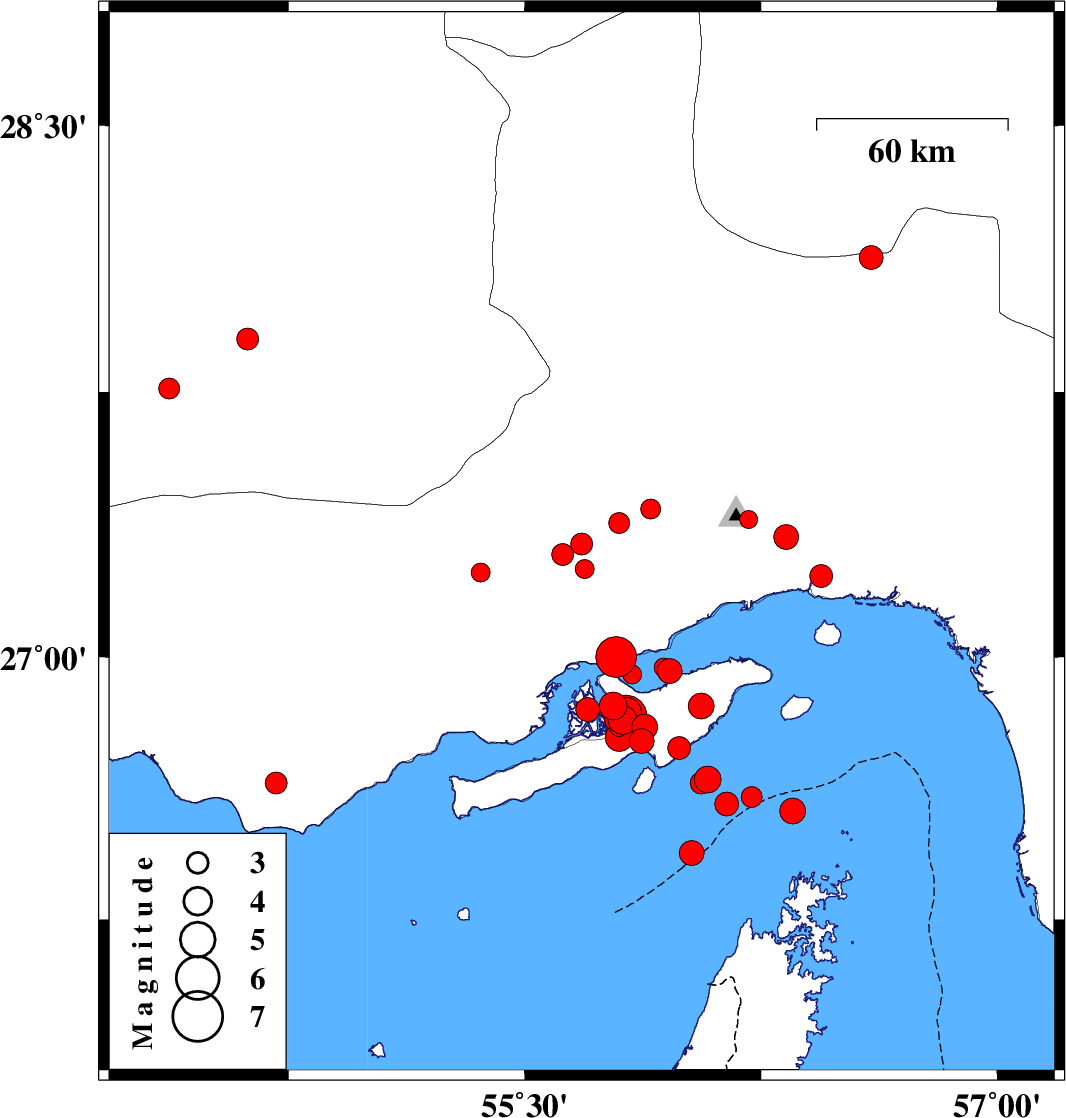 2005/11/27 16:30:39.1 20:00:39.1 2755.7914 Mb:5.8 Persian Gulf, 47 km West of Qeshm