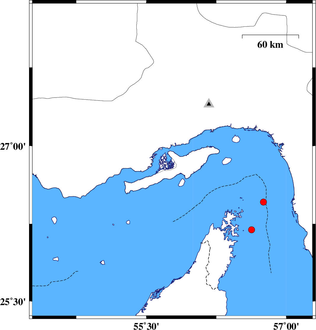 2005/11/27 16:30:39.1 20:00:39.1 2755.7914 Mb:5.8 Persian Gulf, 47 km West of Qeshm