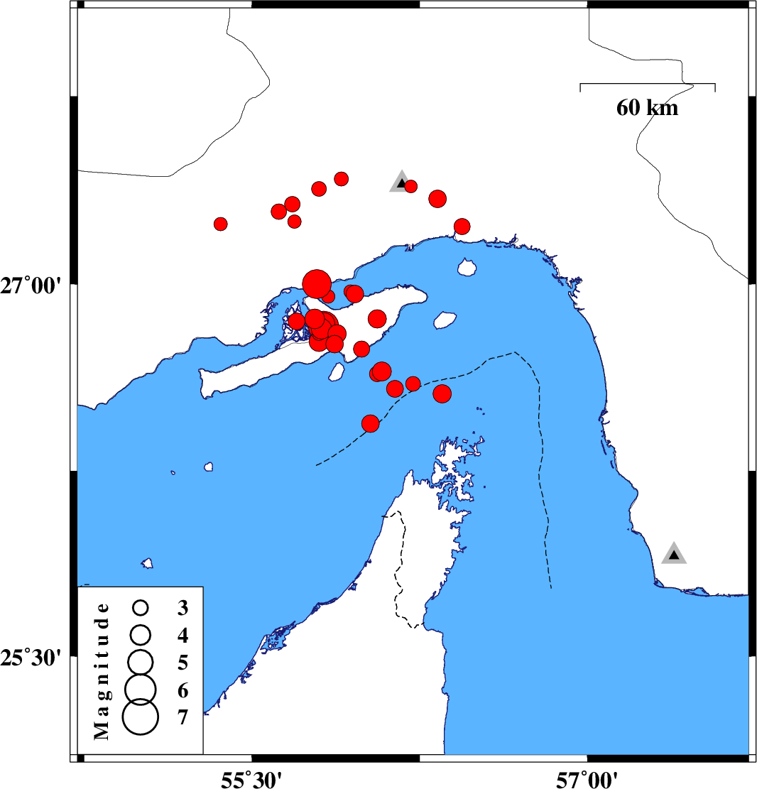 2005/11/27 16:30:39.1 20:00:39.1 2755.7914 Mb:5.8 Persian Gulf, 47 km West of Qeshm