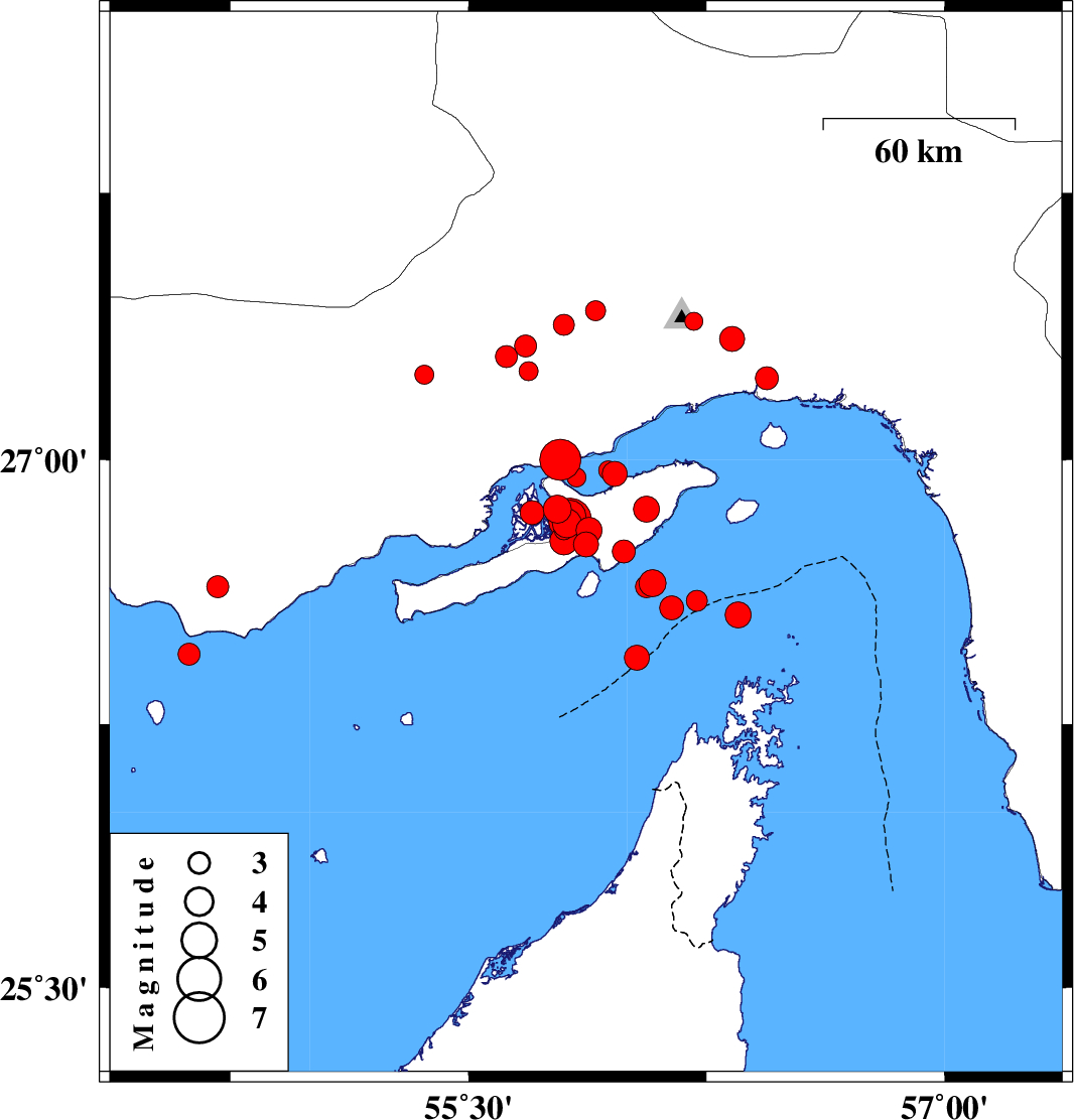 2005/11/27 16:30:39.1 20:00:39.1 2755.7914 Mb:5.8 Persian Gulf, 47 km West of Qeshm