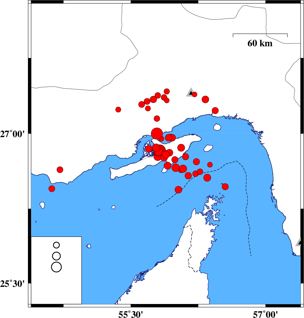 2005/11/27 16:30:39.1 20:00:39.1 2755.7914 Mb:5.8 Persian Gulf, 47 km West of Qeshm