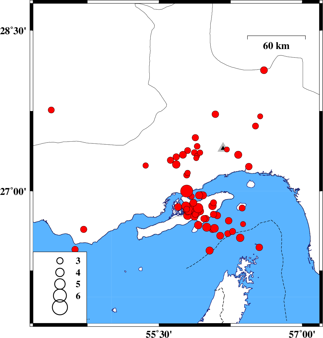 2005/11/28 | 14:12:55.0 | 17:42:55.0 | 27.34 | 55.75 | 14 | ML:3.4 | |||