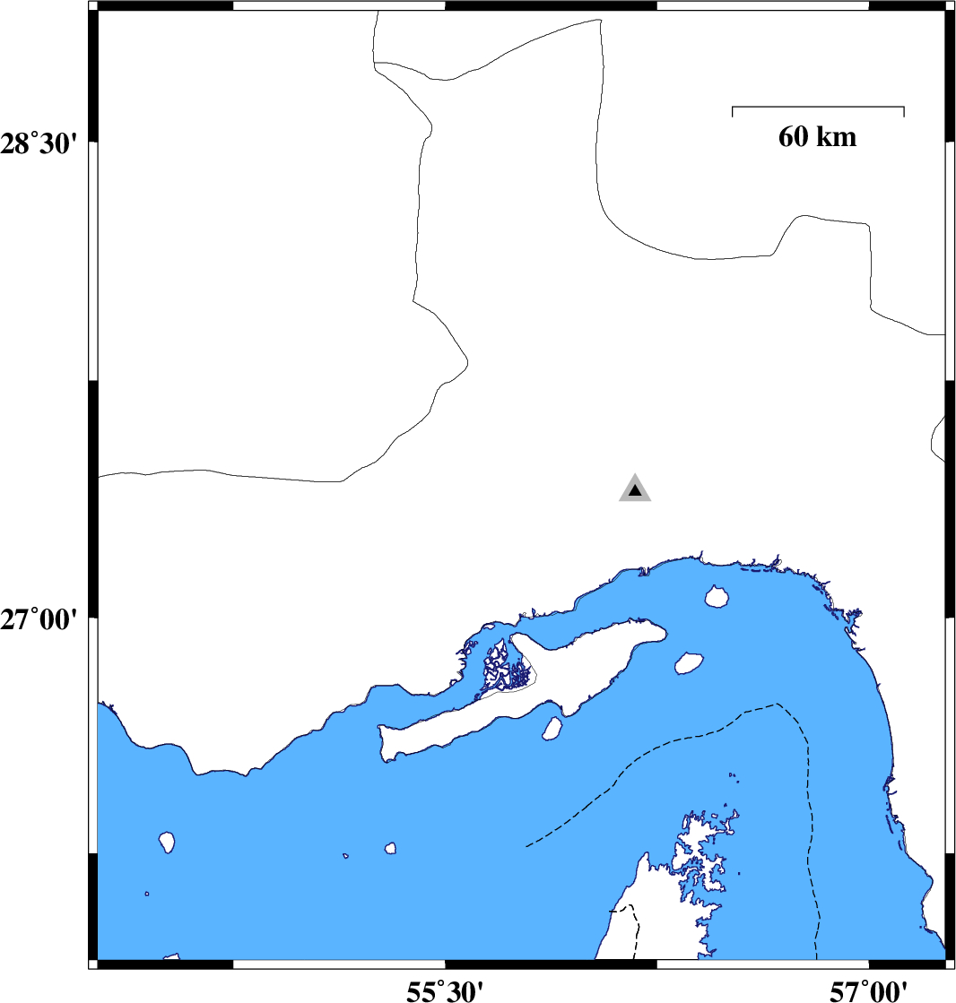 2005/11/27 | 10:22:19.2 | 13:52:19.2 | 26.83 | 55.82 | 8 | Mb:6 | Persian Gulf, 46 km South-West of Qeshm | ||